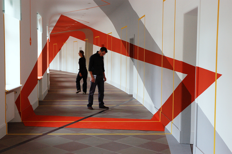 Die Installation stellt sowohl objektive als auch subjektive Bezüge zum Ort her, macht ihn in seinen unterschiedlichen Dimensionen sichtbar und erlebbar.
