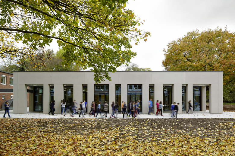Neben der Funktion als Mensa und Aufenthaltsraum der Oberstufe, ist das Gebäude auch als Versammlungsstätte für festliche Aktivitäten der Schule entwickelt worden. Eine überdachter Zugang bindet das Gebäude an die bestehende Aula der Schule an. Zu festlichen Anlässen kann nach einem offiziellen Veranstaltungsteil in der Aula das neue Speisesaal als Festsaal genutzt werden.