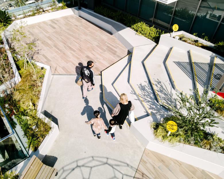 開業後「アミュにわ(6F〜10F)」「アミュそら(RF)」と名付けられた屋上庭園で、学校帰りの学生や子連れの親子等、多くの利用者が思い思いの時間を過ごす姿があった。これからも「アミュにわ」「アミュそら」が商業施設という枠組みを超えて、まちに開かれた公園のような場所として、宮崎の人々の暮らしの中に溶け込んでいくことを期待している。