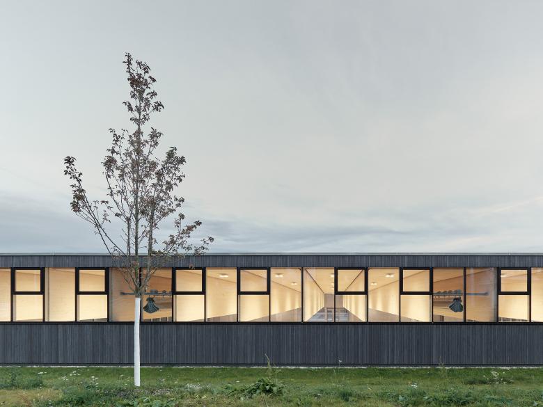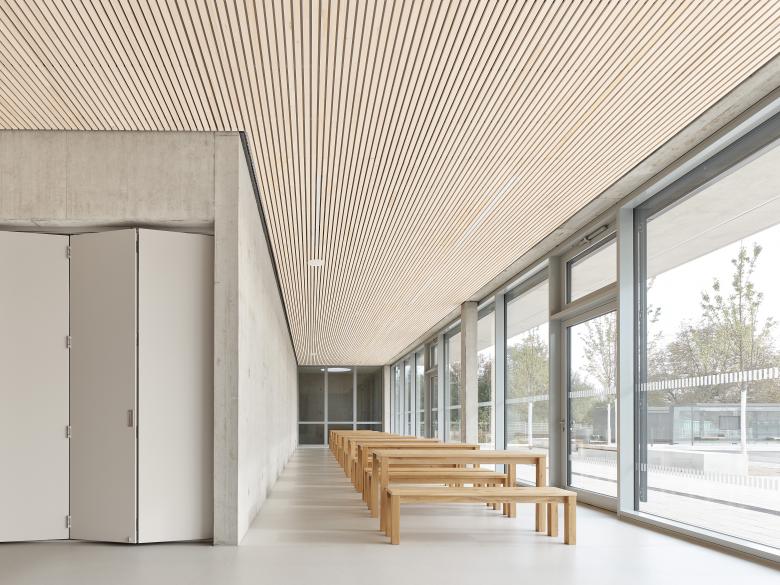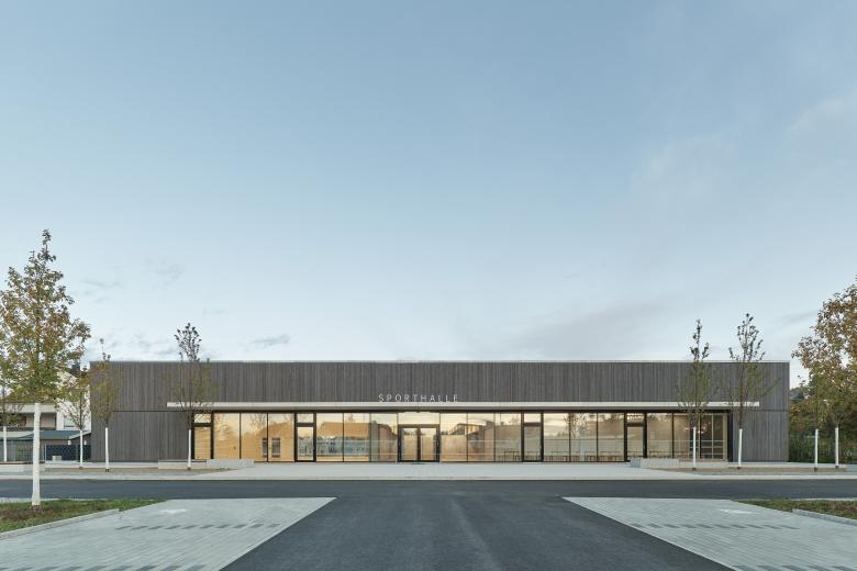 Die Kleinstadt Erbach an der Donau wächst und somit auch ihr Bedarf an Infrastruktur für das örtliche Gemeinwesen. Die notwendig gewordene neue Dreifeldhalle für Schul- und Vereinssport ist kein rein funktionaler Zweckbau, sondern mit einladendem Vorplatz, freundlich gestalteten Zuschauerbereichen samt Bewirtungsmöglichkeiten und viel Transparenz auch ein Treffpunkt des Gemeindelebens mit enorm hoher Aufenthaltsqualität und integrativer Kraft. Der offen gestaltete Zuschauerbereich wendet sich über großflächige, bodentiefe Verglasungen zur Stadt hin und auch in die weite Halle hinein. Vom alltäglichen Betrieb bleibt er unberührt; die Sportler nutzen einen separaten Eingang auf der Seite und profitieren dabei von kurzen Wegen. Der für Gymnastik vorgesehene, dennoch flexibel nutzbare Mehrzweckraum lässt sich über eine mobile Trennwand zum Foyer hin öffnen und in größere Veranstaltungen einbeziehen. Die fest installiert Zuschauertribüne bietet Platz für 300 Personen. Sitzelemente aus Holz mit begehbaren Glasscheiben transportieren Tageslicht in die Umkleideebene im UG und bieten überraschende Ein- und Ausblicke.