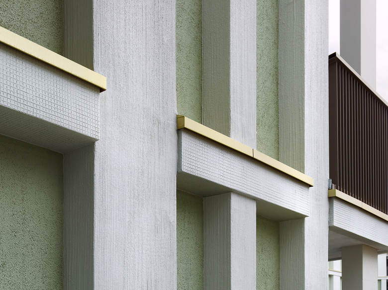 Die Lärmbelastung des Baufeldes wird zum Entwurfsgenerator: Zum lauten Äusseren minimieren wir die Abwicklung der drei Wohnneubauten, hier bringen wir öffentlichere Räume wie Küchen, überhohe Esszimmer und Treppenhäuser unter. Die Wohn- und Schlafräume orientieren sich hingegen zum Innenhof. Der Grundriss wird dabei so verdreht, dass frontale Einblicke in die gegenüberliegenden Wohnungen vermieden werden und ein Gefühl von Weite entsteht. Mit dieser Grundrissgestaltung werden auch eigentlich kleine Flächen als grosszügig empfunden.