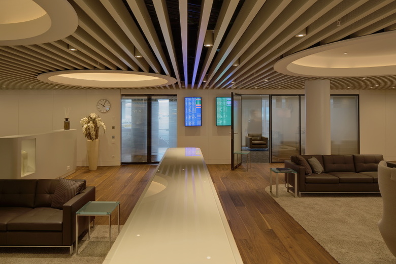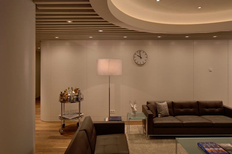 Repräsentativer Lounge mit Gastro- und Konferenzbereich in LED Technologie.