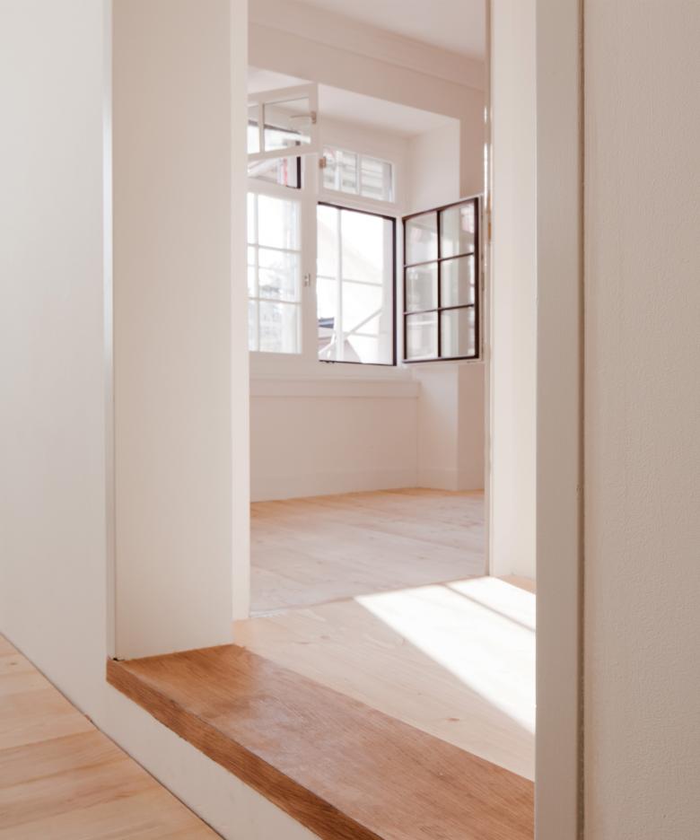 Das aus einem Vorder- und mehreren Hinterhäusern bestehende, denkmalgeschützte Zunfthaus zur Saffran musste bezüglich Brandschutz und baulichem Zustand saniert werden. Um gleichzeitig den Wert der Liegenschaft aufzuwerten und die Sicherheit zu verbessern, wurde eine neue Wohnung mit rund 190 m2 auf drei Geschossen eingebaut. Gleichzeitig wurde das Dach mit neuen Dachfenstern und Gauben sowie die Fassaden saniert. Bei dieser Sanierung, die in enger Zusammenarbeit mit der kantonalen Denkmalpflege erfolgte, handelt es sich um ein exemplarisches Beispiel, wie alte Bausubstanz und aktuelle Wohnbedürfnisse vereint werden können. Im Innern entstand eine lichtgraue Box mit den sanitären Räumen auf einem neuen, geölten Riemenboden aus Fichte, die die Deckenstukkaturen unberührt lässt. Die Küche bildet den Abschluss der neu interpretierten Treppenbrüstungen und unterteilt den Wohn-/ Essraum. Aussen wurde der Fassadenputz nach alter Rezeptur, in einem aufwändigen, mehrschichtigen Verfahren aufgetragen. Die defekten Sandstein Fenstereinfassungen wurden gereinigt und wo nötig plattiert. Die Holzfenster mit Ziehglas wurden in Anlehnung an die ursprünglichen, feingliedrigen Profile ersetzt.