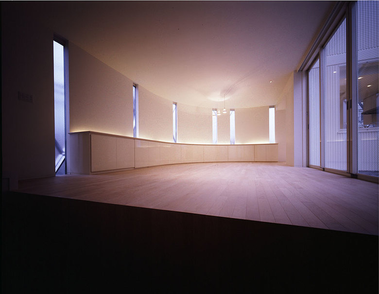 酒屋を営む家族のための、店舗と2世帯住宅からなる複合建築です。構造システムが。最も大きな特徴となっています。この建築が建つ福井市は多雪地であり、構造設計上考慮しなければならない積雪は2mにも達します。にもかかわらず、この建築は、幅36mm奥行き100mmの、非常に細いスティールのフラットバー(平鋼)によって支えられています。