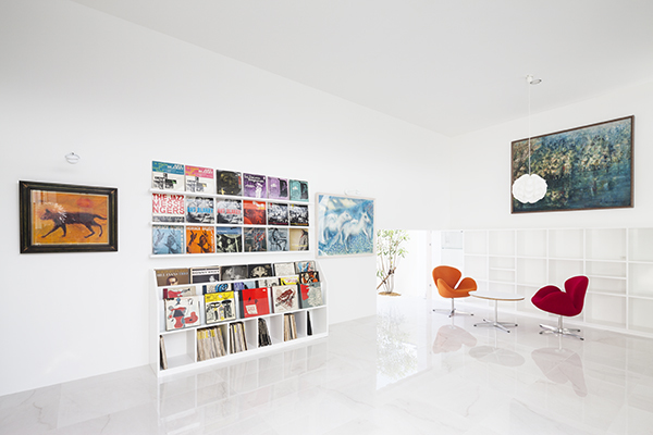 美術館のような住宅を建てたい。」という、絵画鑑賞と絵を描く事が趣味の建築主のための住宅です。それぞれの空間に飾られた所蔵作品を見て行くと、まるで美術館の展示室のように住宅を一筆書きで巡ることができます。外部からの視線を遮りたいという建築主の要望を満たしながら、風や光が抜け、シークエンスと重層性のある空間構成になっています。
