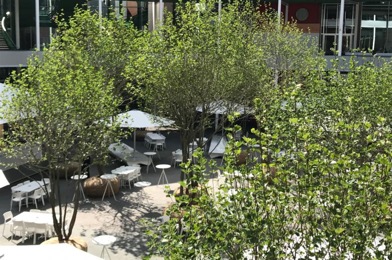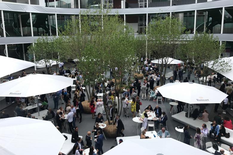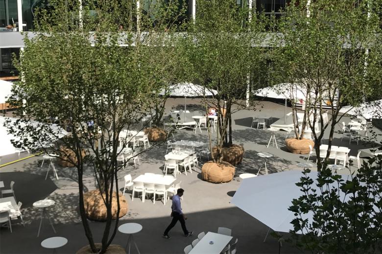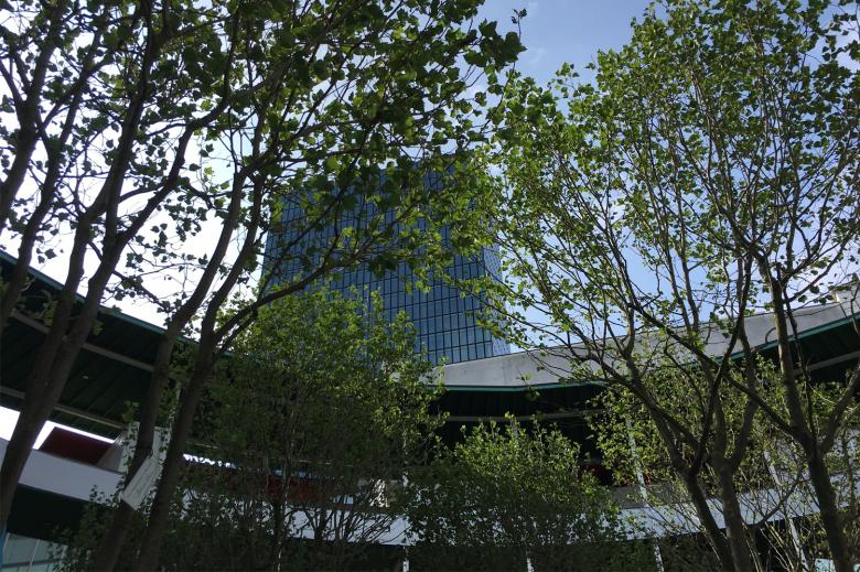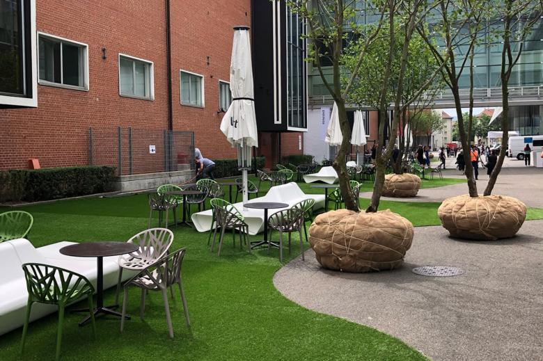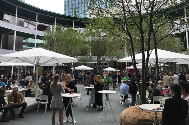 Es war eine Stimmung im Sinne Max Frischs, die die temporären Aussenräume der Art Basel 2018 prägte: Die Isteinstrasse und der denkmalgeschützte Rundhof wurden für die Messezeit zu stillen, freundlichen Orten im Blätterschatten. Zu den filigranen Stahlstützen des Hofes gesellten sich kräftige Platanenstämme. Das Kronendach bot Raum, um für kurze Zeit genussvoll die Kunst zu vergessen.