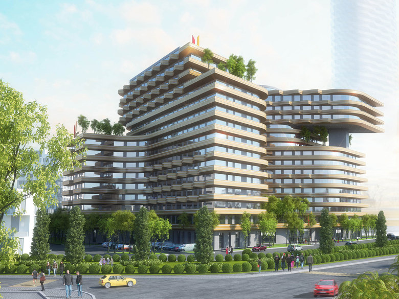 Der Butterfly Tower ist ein 16-geschossiges Hochhaus mit 493 Serviced Apartments. Die begrünte Mix Use Sockelzone bietet Platz für Geschäfte, Restaurants, Bars, Cafés und Parken im Untergeschoss.
