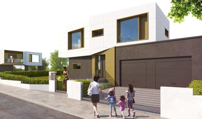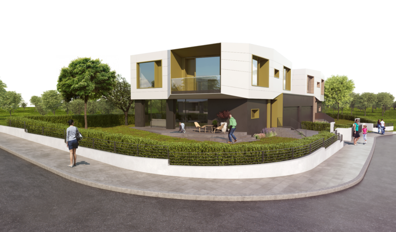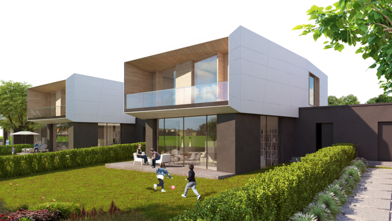 Franken Architekten wurde im Rahmen eines exklusiven Architektenwettbewerbs von der Lechner Group für den Entwurf von zwei Villentypen für die Bebauung von 20 Grundstücken, von 500 m² bis über 700 m², mit zwei unterschiedlichen Typen am Riedberg, Frankfurt jüngstem Stadtteil, beauftragt.