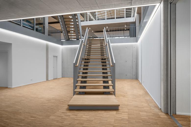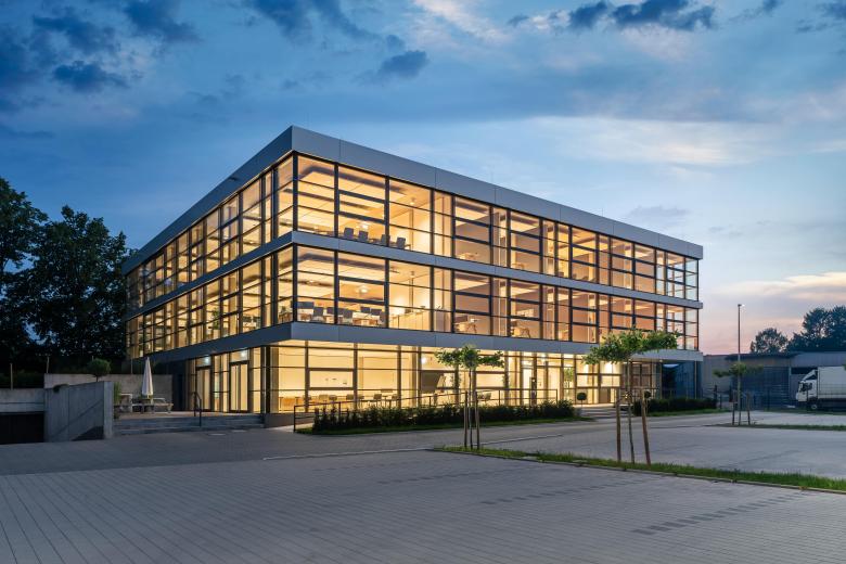 Hinsichtlich seiner Funktionalität und Bauästhetik zeigt der dreigeschossige Baukörper klare Bezüge zum klassischen Bauhausstil. Eine offene Raumanmutung auf rund 3.000 Quadratmetern Bruttogeschossfläche entstand durch natürliches Tageslicht und eine umfassende bauliche Transparenz. Außen ist eine Pfosten-Riegelfassade mit Dreifachverglasung zur Ausführung gekommen. In Kombination mit einem lichtdurchlässigen Dachabschluss über dem innen liegenden Atrium erschließen freie Treppen die einzelnen Ebenen.
