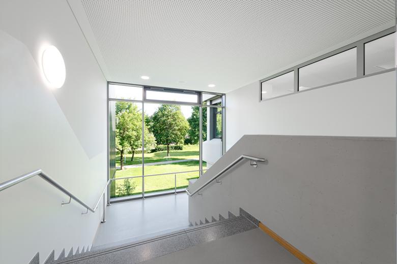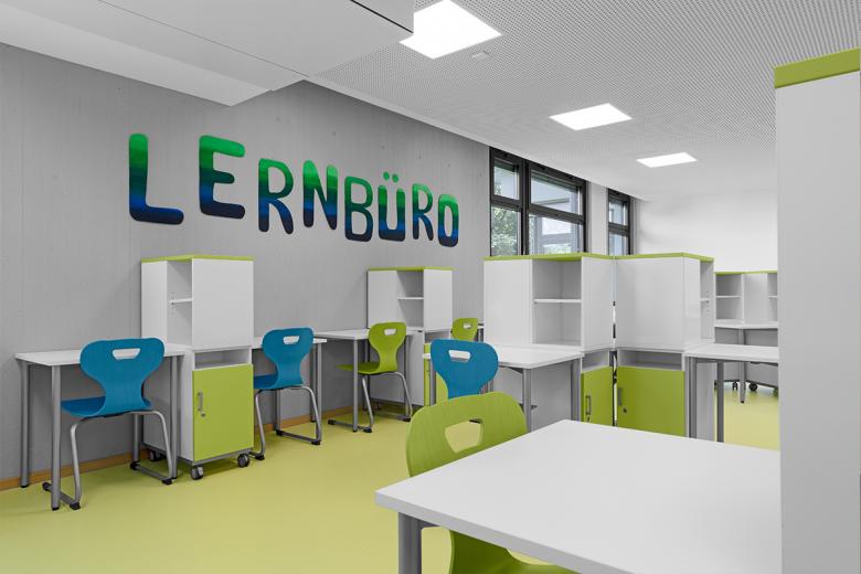Sämtliche bauliche Veränderungen und Modernisierungsmaßnahmen im Bestandsgebäude zielten darauf ab, offene Lernumgebungen insbesondere für die interaktive Arbeit in Kleingruppen zu schaffen. So wurde etwa im Bereich Naturwissenschaften die bisherige Frontalpräsentation ersetzt: Künftig erfolgt die Wissensvermittlung praxisnah an sieben Labortischen, die jeweils für maximal vier Schüler ausgestattet sind.