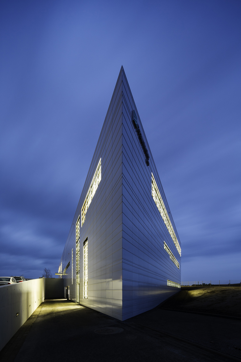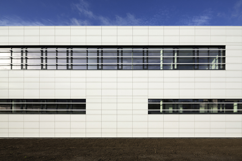 Hermsdorf, 20.5.2014 Der am 7. Mai eingeweihte Forschungsbau von Gewers Pudewill wurde aufgrund der dynamischen Entwicklung des IKTS am Standort Hermsdorf in Thüringen benötigt. Die Berliner Architekten konzipierten den zweigeschossigen und über 5.700 Quadratmeter großen Erweiterungsbau als einen markanten und identitätsstiftenden Solitär. Südlich der Bestandsbauten des Instituts und eingerahmt von Industriegebäuden sowie der Autobahn A9 reagiert der Baukörper in Form eines Parallelogramms auf die heterogene Umgebung. Zugleich schafft der Neubau auf diese Weise eine Verbindung zu Bestandsgebäuden des Instituts und lässt nach Süden Raum für künftige Erweiterungen.