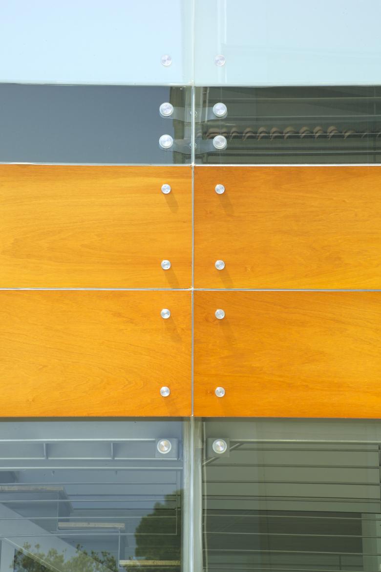 - il tema dell’introspezione e della regolazione/captazione della luce, indotto dalle forti presenze di confine, argomento generatore di una pelle in vetro che avvolge l’edificio, diventa l’interfaccia tra interno esterno, regolatore della luce ed elemento unificante, che camaleonticamente muta geometria e forma, “registrando” gli usi molteplici che avvolge. Una pelle che si sfoglia e piega costituendo uno schermo di protezione visiva ed, allo stesso tempo, una macchina per la captazione della luce. La pelle è il luogo dei riflessi, dei riverberi visivi; le finestre scompaiono, le “squame” disegnano tagli e sporti, una sorta di superficie “a spessore”.