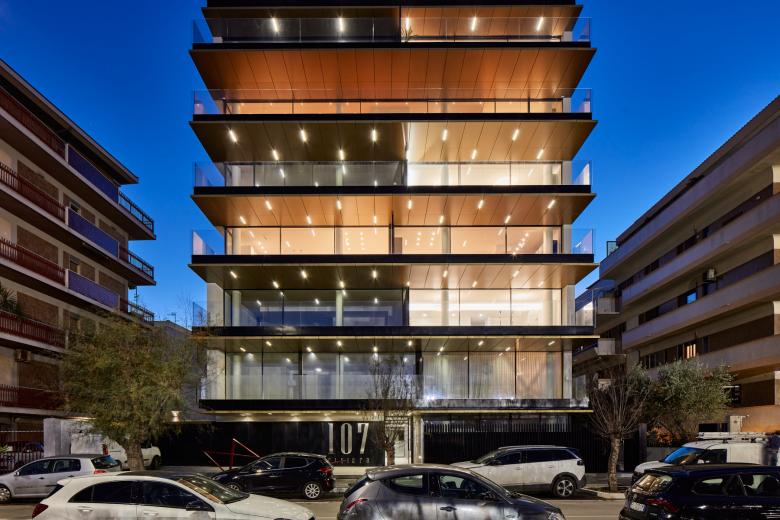 A building, perfectly inserted in the urban fabric, which reinterprets the typology of the palazzina (apartment building), to which the architect, based in this city, has been dedicating his research and studies for some time.