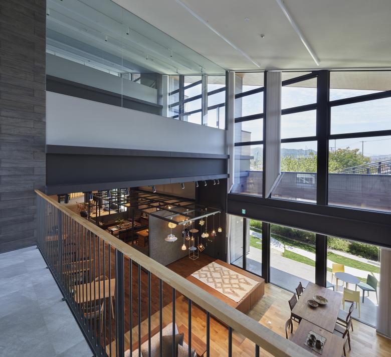 Since the client of LC's office function is a company that comprehensively handles the design and construction of custom-built housing, we thought it would be desirable for this project to build the building in-house, which would lead to branding and pride in the building. Therefore, we decided to use conventional wooden construction methods rather than the latest technologies such as CLT construction methods, because we wanted the client to construct a large-scale building by themselves, using construction methods that can be built by craftsmen who build houses. In other words, the plan was to construct a three-story special building consisting of an office, exhibition space, and retail store using conventional wooden construction methods, and to partially reveal the structure as a wooden expression. This was an unprecedented attempt for a special building, except for a school, for which legal requirements could be relaxed, and it was extremely difficult to realize.