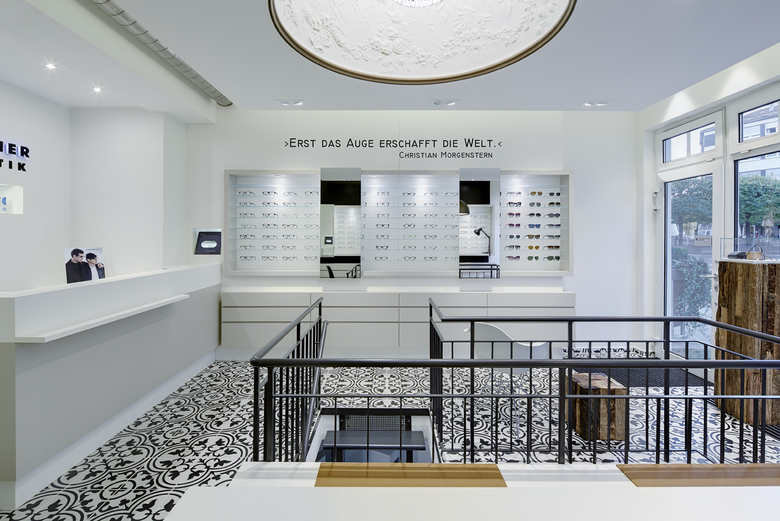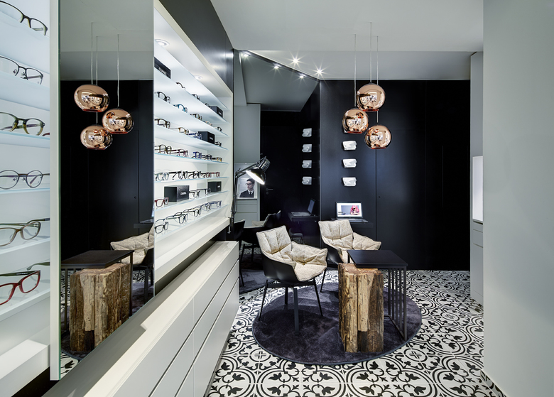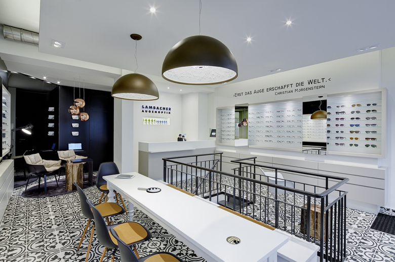 Das Pforzheimer Optikerfachgeschäft inszeniert seine Brillen in einem Ladenbau- und Designkonzept voller Gegensätze. Das kleine, im Erdgeschoss gelegene Ladenlokal schafft es, Kunden zu fokussieren. Bereits im Schaufenster treffen Materialien und Farben in unerwarteter Kombination zusammen. Imposante und hochwertige Glasvitrinen wurden hier auf riesigen Altholzstehlen platziert. Betritt man das ansprechende Ladenlokal befindet man sich direkt in einer Welt aus Klassik und Moderne. Das Auge hat hier viele, gekonnt platzierte Details zu entdecken.