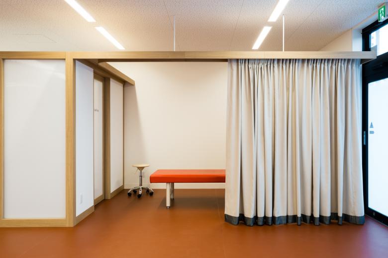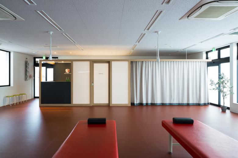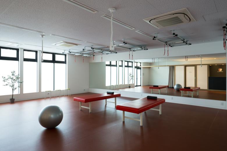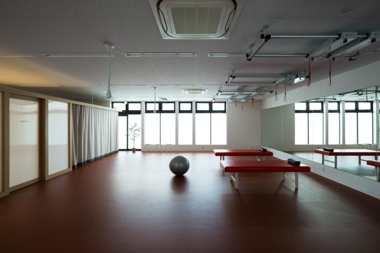 Existing facilities have become too small due to the wide range of needs, from recovering local residents' physical functions to improving the performance of top athletes. For this reason, the new facility was designed to specialize in treatment using the ceiling-suspended sling exercise "Red Cord."