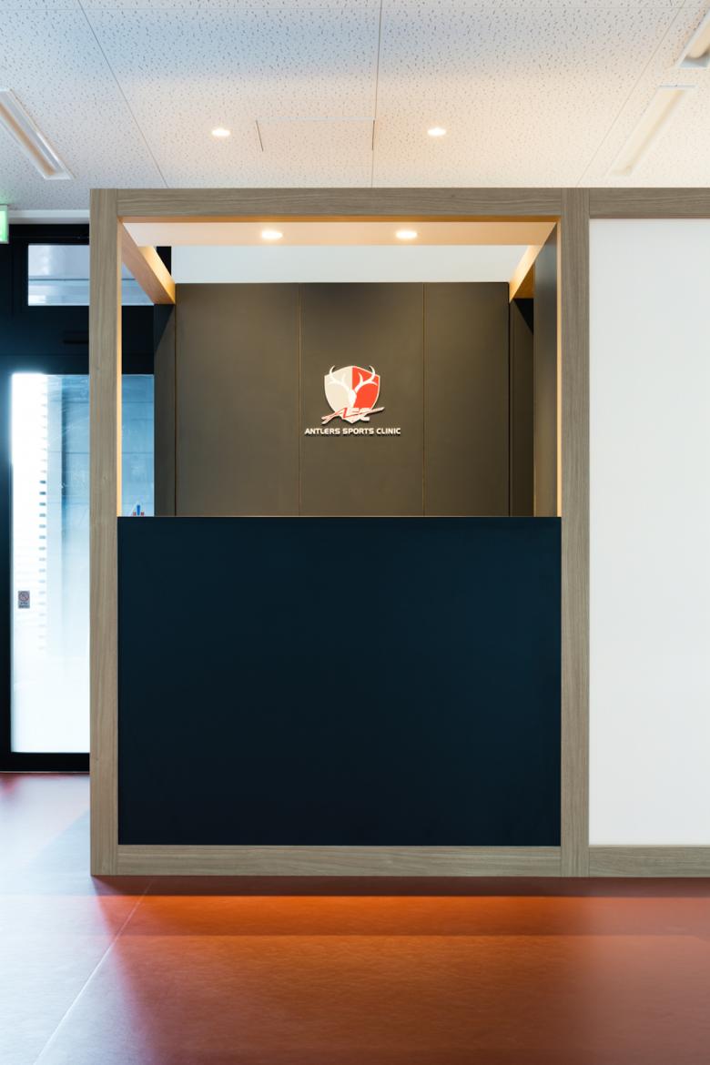 In addition, the team colors ``Antlers Red, Flaxen, and Black'' were used to finish the main elements such as floors, partitions, fabrics, and reception counters.