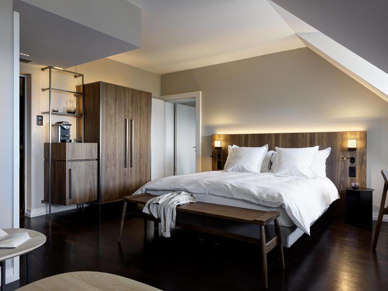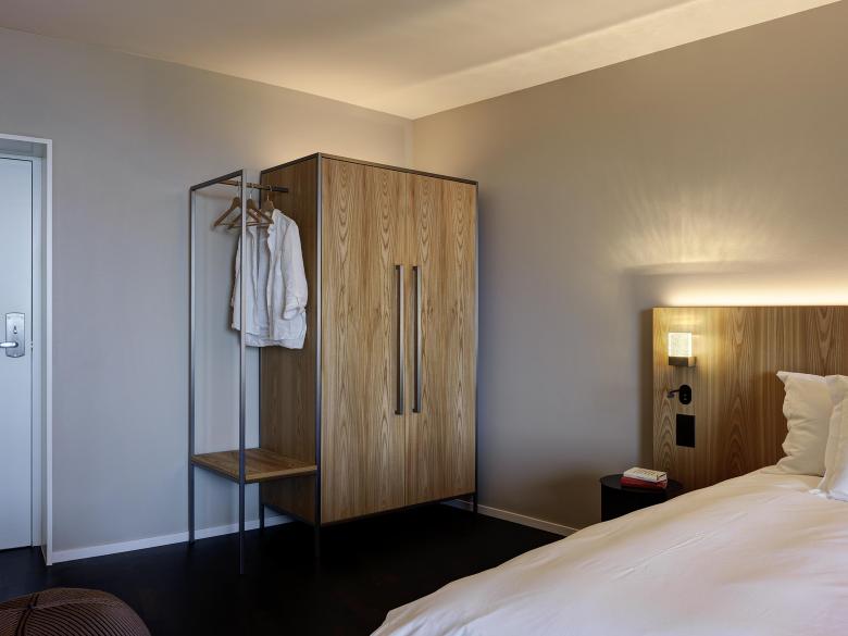 Die Gestaltungsstrategie ist Reduktion & Multifunktionalität. So wirken die Zimmer leicht, elegant und persönlich. Die „Swissness“ wird jenseits von urchigen Klischees repräsentiert. Ganz unter dem Motto „Think global, act local“, ist die Gestaltung lokal, wertig, langlebig, handwerklich und somit nachhaltig.