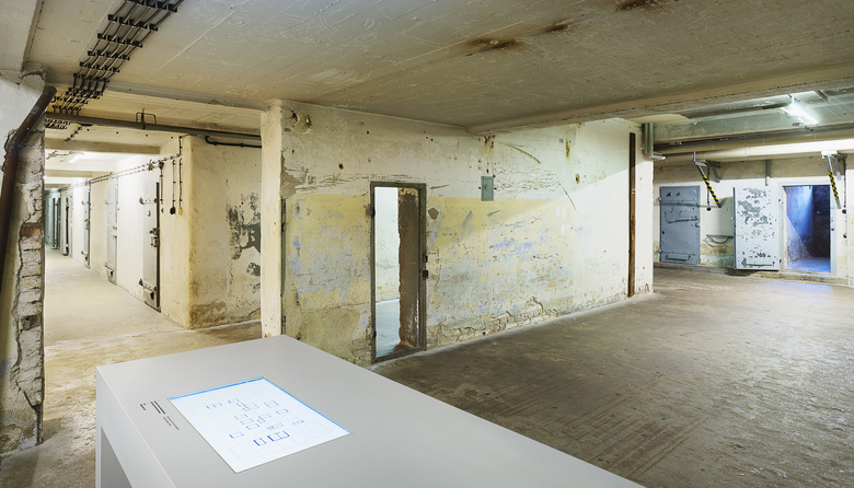 Im Untergeschoss erlebt der Besucher einen authentischen Eindruck des sogenannten »U-Bootes«, eines fensterlosen Gefängnistrakts. Die Eingriffe der Ausstellungsgestaltung sind noch weiter zurückgenommen. Lediglich eine Zelle ist medial bespielt, um wesentliche Fakten didaktisch aufzeigen zu können. Ein interaktiver Monitor erzählt die Geschichten der ehemals in den Zellen Inhaftierten.