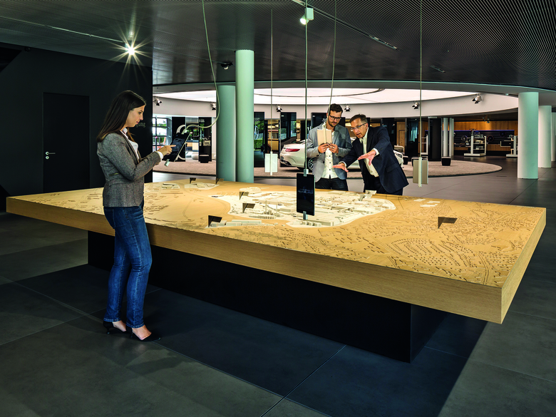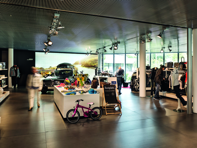 Es gibt kaum ein intensiveres Markenerlebnis, als die Abholung des eigenen Mercedes-Benz an seiner Produktionsstätte. Mit der Neugestaltung des Kundencenters Sindelfingen werden die Markenwerte „intelligent und emotional“ sowie die Designphilosophie „sinnlich und klar“ jetzt erlebbar. Einladende Lounges und Gastronomiebereiche, attraktive Shops und innovative Ausstellungsflächen geben den Besuchern jenes Gefühl von modernem Luxus, für das Mercedes-Benz wie keine zweite Marke steht.