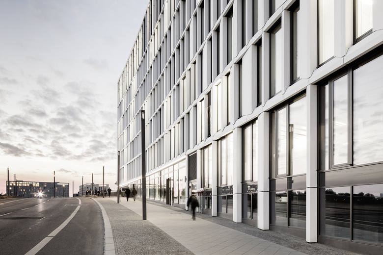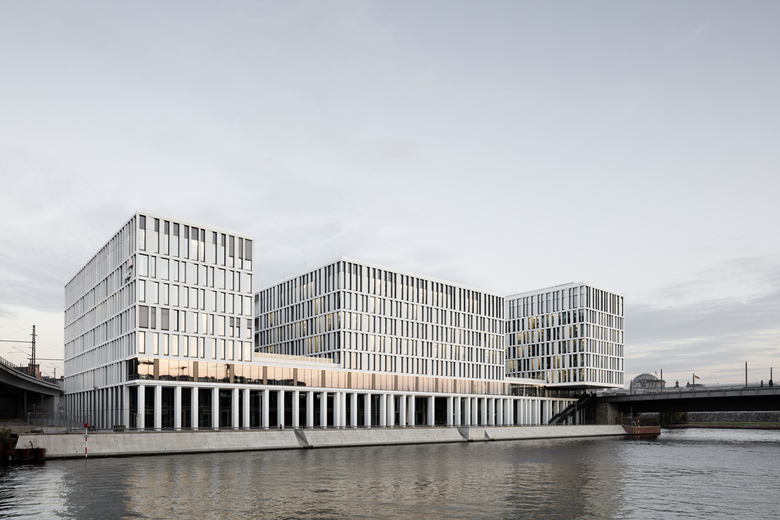 Der sieben- bzw. achtgeschossige Neubau am Humboldthafen bildet analog zur vorgesehenen Blockrandbebauung klare Raumkanten. Durch die mäanderförmige Baukörperfigur werden in den Obergeschossen mit Büronutzung die Höfe nach außen hin geöffnet. Alle Mieteinheiten des Bürogebäudes haben dadurch einen Ausblick zum Humboldthafen und zur Spree. Entlang der Uferpromenade am Humboldthafen sind Arkaden und öffentliche Nutzungen wie Cafés und Restaurants vorgesehen.