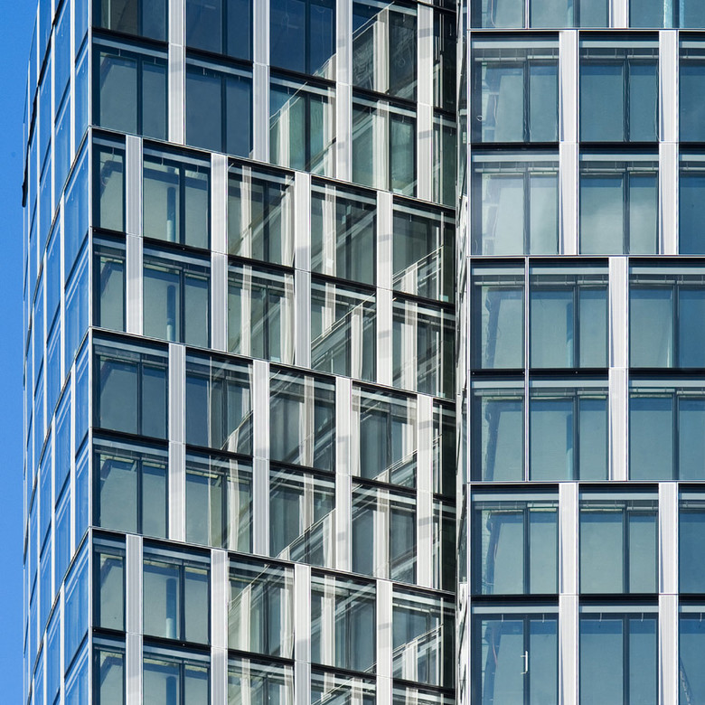 Da man in der Geschoßhöhe auf drei Meter beschränkt war, wurde ein gefaltetes Deckensystem entwickelt, in dem je nach Lage eine abgehängte Decke (Zuluft, Sprinkler in den inneren Flurbereichen) oder ein Doppelfußboden (IT, Elektroinstallation in den umlaufenden Bürobereichen) integriert wurde. Durch die Integration der Haustechnik in die Konstruktion der Decke beträgt die Gesamthöhe des Deckensystems 53 cm. Durch diese Reduktion konnten in einem Hochhaus von unter 100 Meter Höhe 25 Standardgeschosse untergebracht werden.