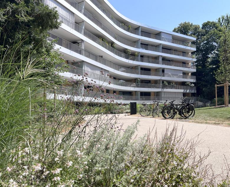- Diminuer l’impact du parking souterrain en accentuant l’atmosphère paisible de jardin avec ses poches de jeux.