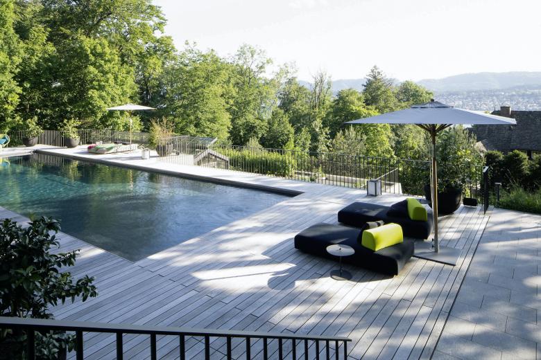 Das Bauen und Renovieren im Bestand und in einer schwer zugänglichen Hanglage bedeutete eine grosse Herausforderung. Der Bauablauf war sehr anspruchsvoll und die Sanierung führte zu grossen Eingriffen im Bereich Hangsicherung, Kanalisation und Nutzungsänderungen, die wegen den Bestandesbäumen zu grosser Sorgfalt verpflichtete.
