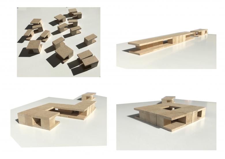 Das gesamte Gebäude ist in einzelne Module zu je 3m Breite gegliedert, die verschiedene Funktionen aufnehmen und beliebig miteinander kombiniert werden können. So kann das Gebäude auf seine Umgebung reagieren und sich gezielt den Anforderungen anpassen. Die vorgeschlagene Modulgröße ermöglicht einen unkomplizierten Transport auf das Grundstück, erlaubt einen maximalen Vorfertigungsgrad mit optimaler Ausbauqualität und zeitsparender, effektiver Montage auf dem geplanten Grundstück.