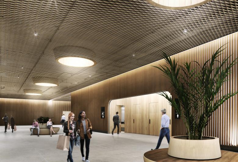 Kompetenz und Qualität ins Zentrum rücken – Beim Design legen die Mint Architekten den Fokus darauf, der Kompetenz und Wertigkeit der Neupositionierung als Fachmarkt den visuellen Rahmen zu geben. Mit hochwertigen und natürlichen Materialien wird eine charakteristische Architektur geschaffen, die trotz klarer Linie ein warmes Ambiente erzeugt. Die Besucher_innen werden durch die Formsprache und dem Materialeinsatz intuitiv durch das Center geführt.