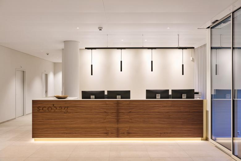 Die Scobag ist eine unabhängige Basler Privatbank, die für persönliche Kundenbetreuung und nachhaltige Finanzdienstleistungen steht. Diese Werte spielten auch bei der Neugestaltung zweier freigewordener Mietflächen im Erd- und Untergeschoss des Geschäftssitzes eine zentrale Rolle. Nach dem Auszug der bisherigen Mieterin eröffnete sich für die Bank die Möglichkeit, den Empfang vom vierten Obergeschoss ins Erdgeschoss zu verlegen und die neu gewonnene Fläche für Kundenempfänge und die Mitarbeitenden zu nutzen. In einem Wettbewerb überzeugte Mint Architecture mit ihrem Vorschlag, die beiden Geschosse zu einem multifunktionalen Community Space zu verbinden, der die Identität und Kultur der Bank widerspiegelt und ihre Sichtbarkeit erhöht.