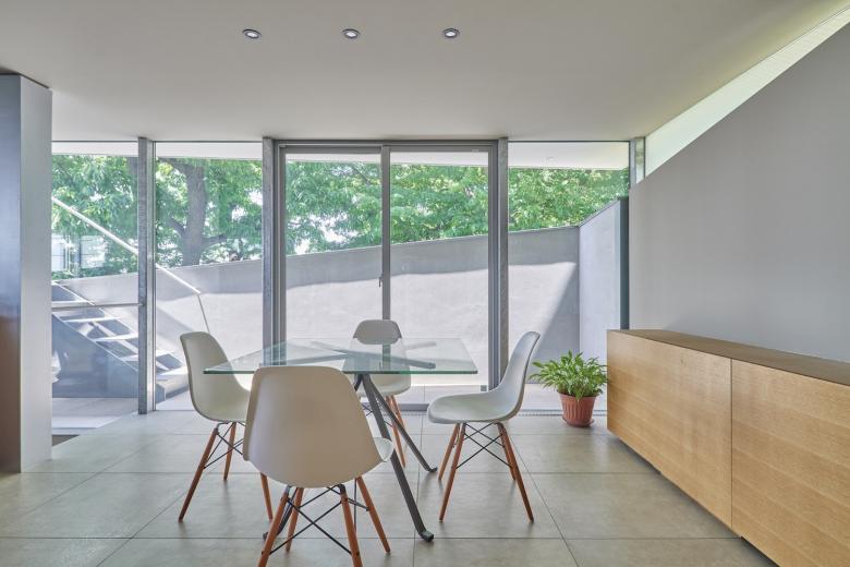 The structure invites visitors to move around to the upper floors and opens up at the top floor. I wanted the house to be a place where the architecture does not forcibly frame the exterior as much as possible, and where the shifting natural environment and the movement of the residents in their daily activities continually change their impression of the space.