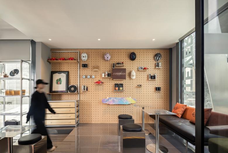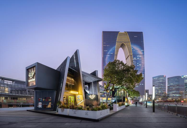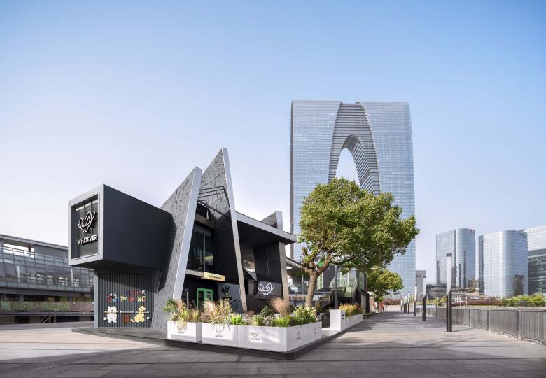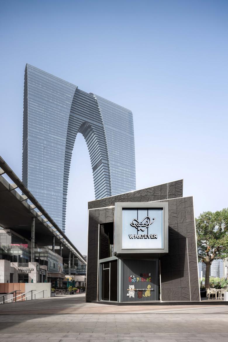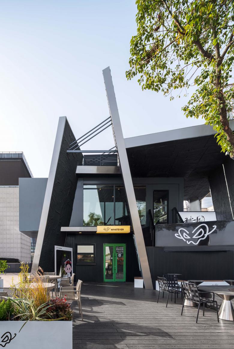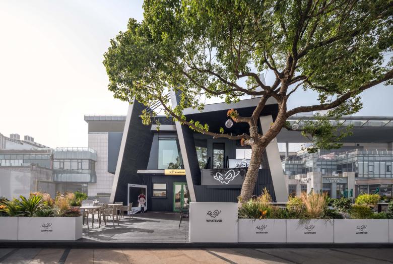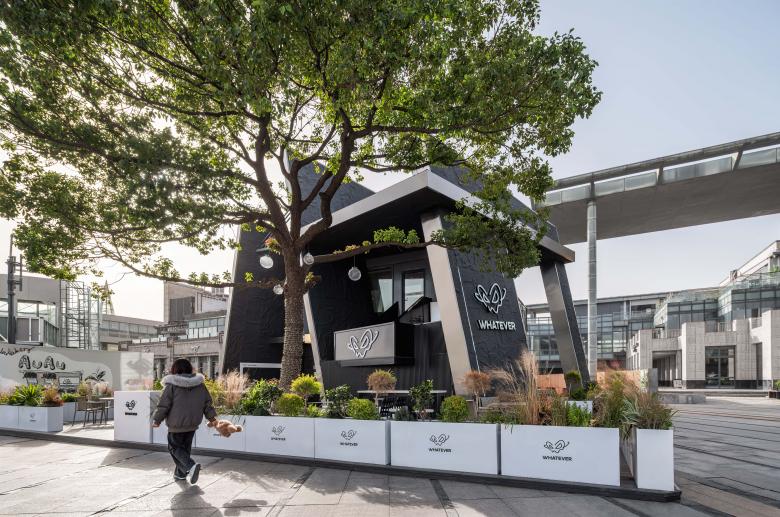 There are always unexpected breathing spaces tucked away in the crevices of a city. In this corner of Lakeside Paradise in Suzhou, the design team adopted the concept of urban cracks and transformed two stacked shipping containers into a dynamic spatial form. This deconstructive architectural design echoes the core ethos of the WHATEVER brand advocated by Daniel Wu—unrestrained, spontaneous yet underpinned by a resilient order.