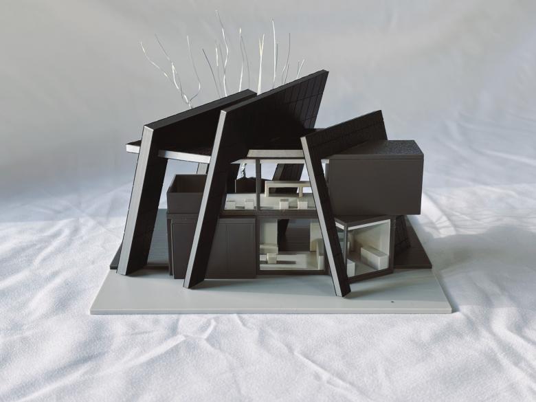 The inclination angle of the wall panels echoes the staircase slope both visually and structurally, and the horizontal steel frame connects the three components into an organic whole. This design not only reinforces the spatial logic of growth from cracks but also leverages steel structural elements to form a Brand Creative Merchandise
