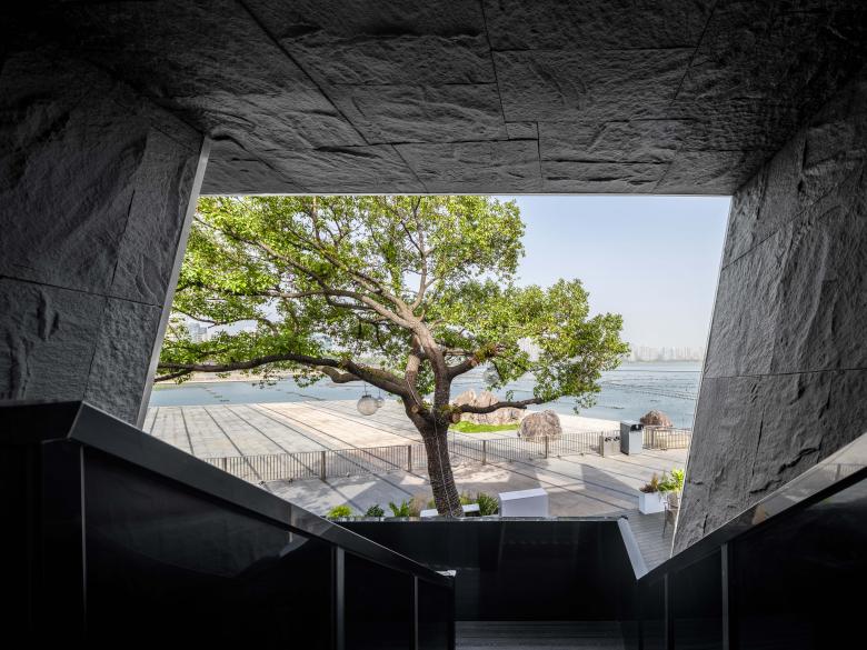 The lakeside facade adopts a clean mass-cutting approach, with the building’s main structure naturally echoing the shoreline. Contrasting the rigid architectural volume against the serene water surface, the design ensures the building’s visual distinctiveness by the lakeside. Meanwhile, its transparent interfaces enable seamless interplay between indoor and outdoor landscapes, organically integrating the café space with the lake views.