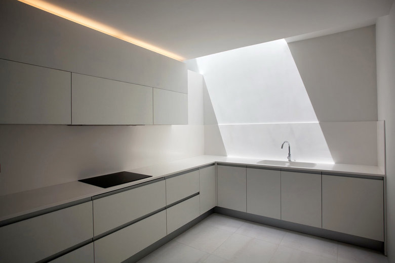 La organización y distribución de las dependencias responde a la racionalidad acostumbrada por el arquitecto valenciano. Las mejores vistas se disfrutan desde el salón, cuyo muro exterior se transparenta gracias a tres enormes tramos de cristal deslizante que dan paso a la terraza, también protegida por una barandilla transparente. Nada hay que entorpezca la vista hasta el horizonte.