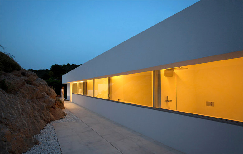 Premiada internacionalmente, la Casa del acantilado del arquitecto Fran Silvestre es una pieza blanca y vibrante aferrada a las rocas de un paisaje lunar. Parece a punto de alzar el vuelo hacia la inmensidad del Mediterráneo más disperso. El paisaje es el del término municipal de Toix Mascarat, en la alicantina Calpe. Está conformado por una abrupta pendiente a orillas del Mediterráneo que, además de unas vistas magnificentes, rebosa de la pétrea solidez en la que se asienta la estructura de losas de hormigón armado que configuran las líneas del edificio: una muestra extrema de minimalismo.