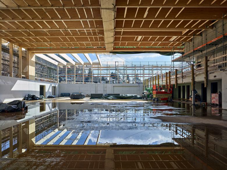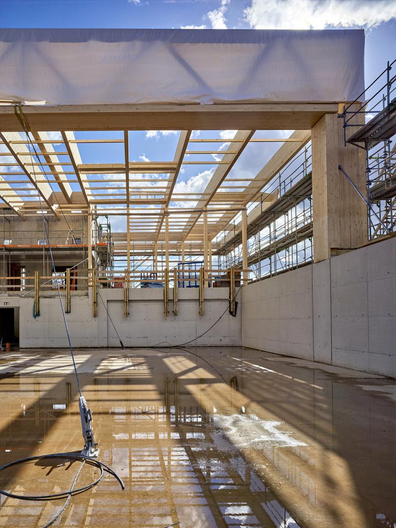 Dokumentation der Errichtung des Daches in Verschiedenen Bauphasen.