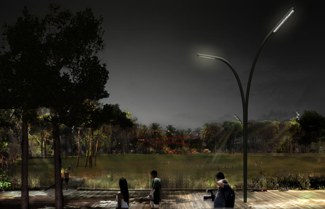 The light of a contemporary urban park like Glòries, revealed the relationship between nature and technology. An urban park is a leisure place but also has contact with nature, this is understood as an opportunity for citizens in their daily lives surrounded by spaces built. The urban context requires a certain comfort, safety, services, etc. This situation often presents contradictions, particularly in the biodiversity cores, which should be protected from them artificial light. It is proposed a challenge, get a balance which includes both areas with light and dark spaces, being that there isn't nature without darkness.