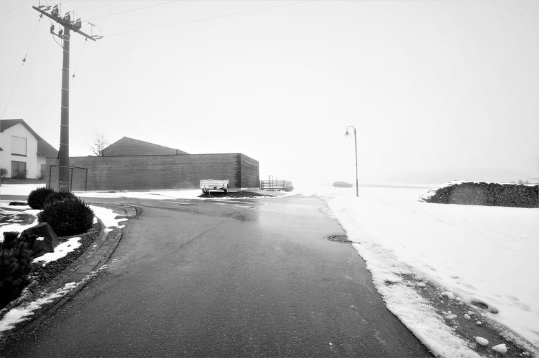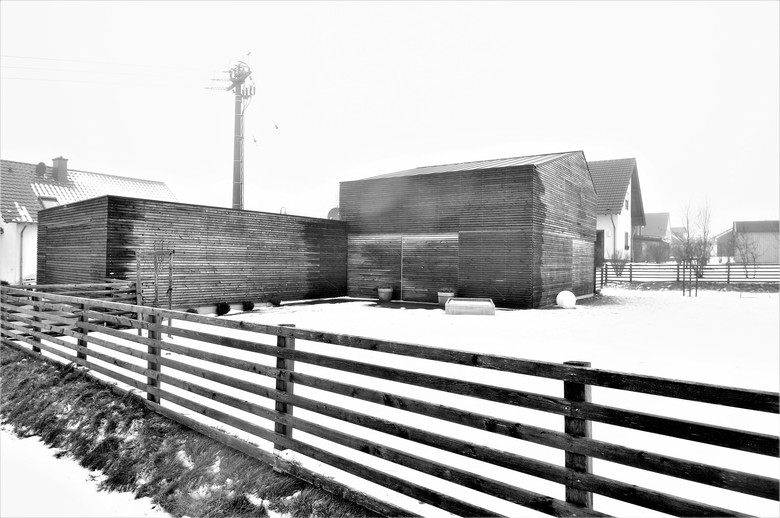 Das erratische Holzhaus im Übergang von Siedlung und Landschaft dient einer vierköpfigen Familie als Wochenend- und Feriendomizil. Der Hausherr nutzt es als Stützpunkt für die Jagd, das Versorgen der Jagdbeute und zum Bewirten von Gesellschaften im separierbaren Jagdzimmer. Eine Nutzbarkeit als zu einem späteren Zeitpunkt dauerhaft bewohntes Minimalhaus war gefordert.