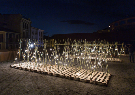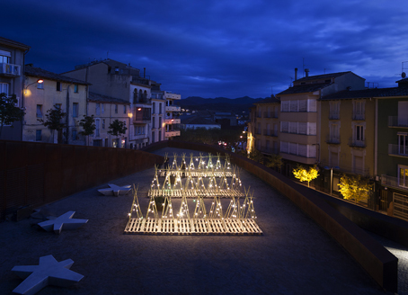 L'Hort de la llum was the response of a commission from Olot's Lluèrnia Festival coinciding with the opportunity to present something in Vinçon gallery. The result was a huge lamp, it was built by known structures and essential part of our rural landscape. The relationship between something essential with electricity and technique is a scene that I like to work.