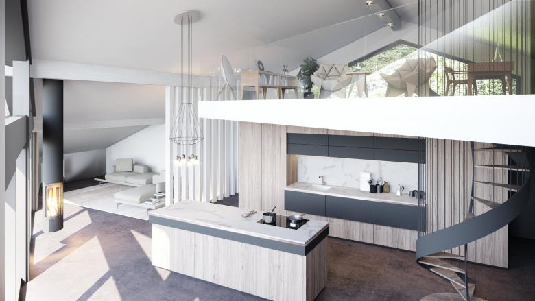 Die vier Wohneinheiten bespielen die unterschiedlichen Ebenen aufgrund der Hanglage und integrieren sich sanft in die Umgebung.