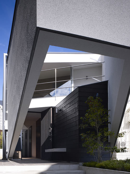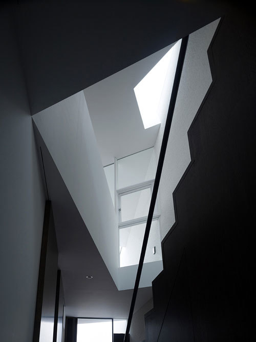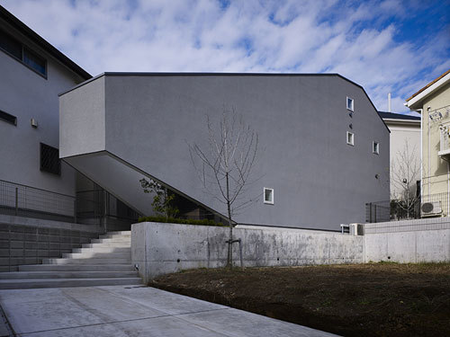 The site is located in a newly developed residential area on a hillside near Tokyo. The site is a triangular flagpole-shaped site that was created in the center of the area as a result of the subdivision of the irregularly shaped town block at a certain depth from the surrounding roads. As a result, the site was surrounded by seven neighboring houses, and no views of the surrounding area could be expected. The house is for two working couples. Comfort was required so that they could relax and spend time together on weekends.