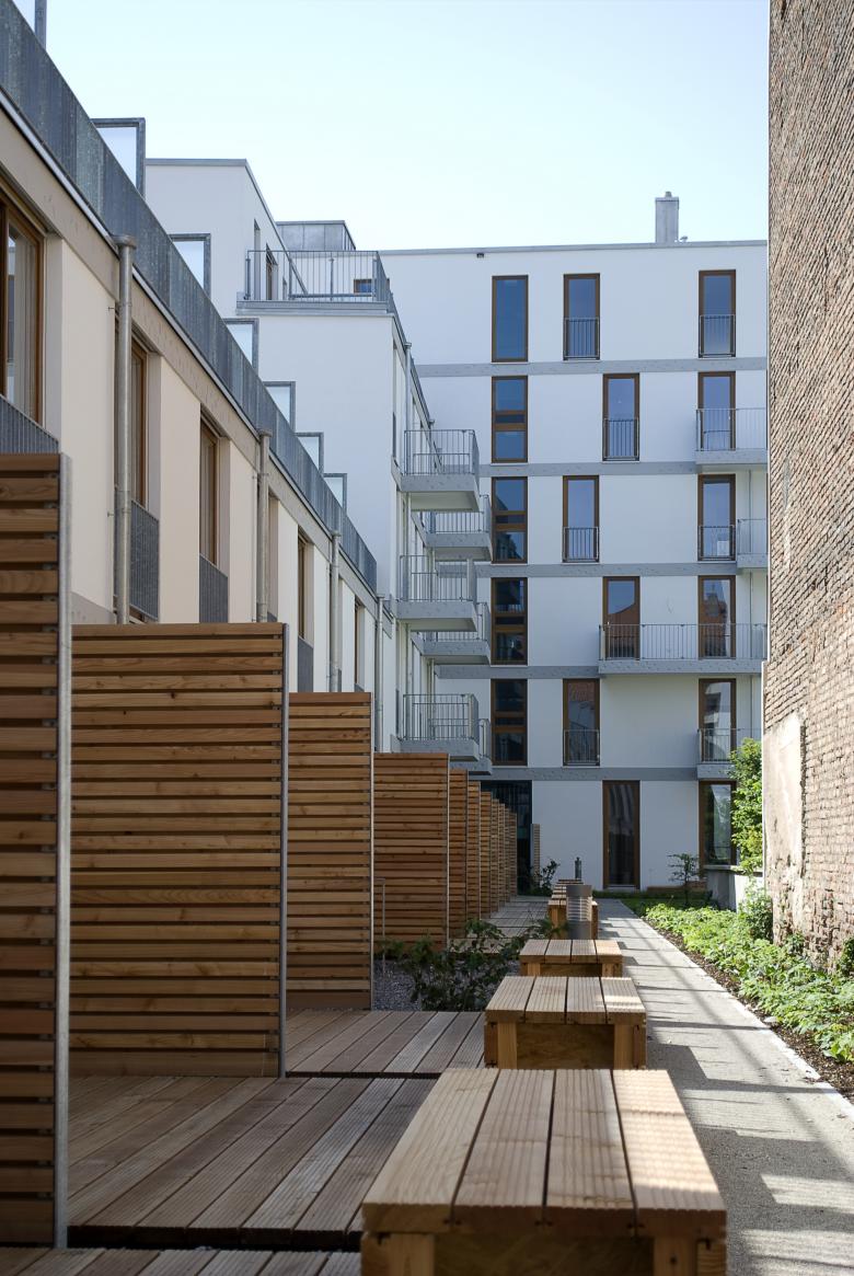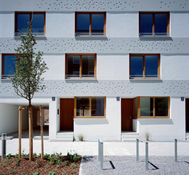 Auf dem Grundstück der ehemaligen Schreinerei und Holzhandlung der Gebrüder Lechner in München Sendling, zwischen Bruderhof, Urban- und Schwaneckstraße wurde eine Wohnanlage mit 69 Wohnungen und einer Tiefgarage mit 75 Stellplätzen gebaut. Das gestalterisch dominierende Element des Hauses zum Straßenraum sind die von der Künstlerin Sabrina Hohmann gestalteten Brüstungsbänder. Die ausschwingenden Balkone verleihen der Fassade große Leichtigkeit. Die großzügigen Fensterelemente wurden aus Holz hergestellt. Dieses stammt aus den Beständen der ehemaligen Holzhandlung und verknüpfen - in jeder Wohnung spürbar - die Vergangenheit mit der Gegenwart des Grundstückes. Im Innenhof setzt sich das Thema des Bandes fort. Dieses bindet die auskragenden Balkone ein. Zwischen den Bändern liegen standardisierte Fenstertüren in einheitlichem Format. Den Mittelpunkt des Innenhofes bildet eine einzelne, neu gepflanzte Linde.