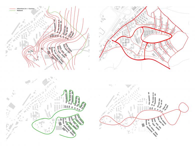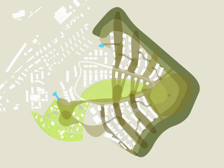 „Jeder wohnt am Grünen“. Das Motto des Masterplans wurde in diesem Wettbewerbsbeitrag zur Erstellung von gut 475 Wohnungen in Köniz nahe Bern konsequent umgesetzt. Durch die Verzahnung von Baufeldern und Grünfingern wird die Landschaft zur Wohnungsumgebung gemacht. Das Äussere der Baufelder wird klar geschnitten, maximal privatisiert und gegen die Grünfinger abgegrenzt. Das Innere hingegen ist plastisch, von öffentlich zu privat fein abgestuft und ermöglicht eine differenzierte Aneignung durch die Bewohner.