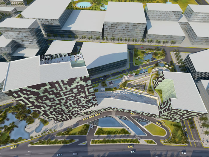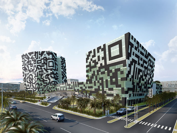 Das Code Unique Hotel in der Dubai Studio City ist ein Ort, an dem allen Gästen ein exquisiter Service geboten wird um ihren Aufenthalt angenehm und inspirierend zu machen. Die Fassade gibt dem Hotel seinen Namen. Sie ist nicht nur ein Eyecatcher, sie enthält auch einen speziellen Matrix Code. Es steckt also eine Nachricht hinter dem Fassade. Mit einem Mobiltelefon mit integrierter Kamera und der passenden Software lässt sie sich entschlüsseln.