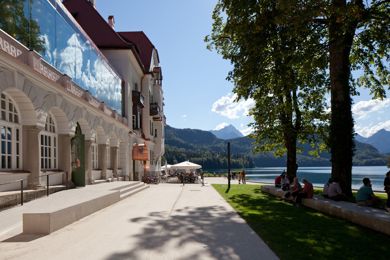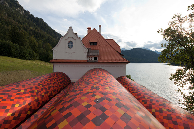 In dem ehemaligen Hotel Alpenrose direkt am Alpsee unterhalb der Schlösser von Neuschwanstein und Hohenschwangau entsteht ein neues Museum über die Geschichte des Wittelsbacher Königshauses. Sichtbar nach außen wird diese Veränderung vor allem über den Bau einer neuen Dachkonstruktion über dem eingeschossigen Verbindungsbau, dem ehemaligen Speisesaal des historischen Altbaus. Mit einem filigranen Stahltragwerk werden in einer dreischiffigen Raumanlage die zentralen neuen Ausstellungsräume entwickelt. Während die beiden äußeren Tonnengewölbe aufgeschnitten sind und somit den Blick in die Landschaft freigeben, entsteht in der mittleren Raumspur der zentrale große Ausstellungsraum. Im angrenzenden Jägerhaus wird der Ausstellungsrundgang auf einer Gesamtfläche von ca. 1.000 qm fortgesetzt. Im ehemaligen Hauptbau des Hotels Alpenrose wird erdgeschossig eine Gastronomie mit großem Freibereich direkt am Ufer des Alpsees entstehen, in den oberen Geschossen ist wieder eine Hotelnutzung vorgesehen.