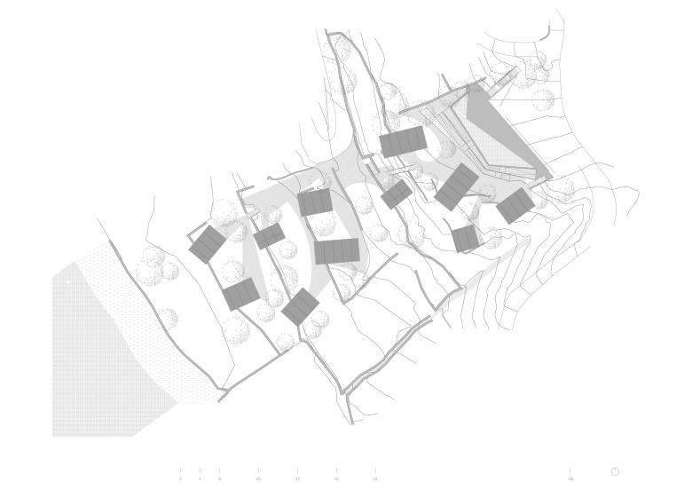 The initial commission was to distribute several touristic rooms over the terrain. However, we proposed small houses - not just rooms - so that some of them would be able to work as full-time houses rather than tourism units. Mixing these two different programs (tourism + housing) we ensure that this complex will not have a seasonal occupation, being inhabited during the whole year and not just in the vacation period. This multifunctional approach promotes the intensity of this complex’s occupation, therefore fostering its frequent maintenance and improving the security of the area.