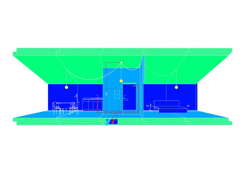 This project was an opportunity to make new experiences within the Gomos building system: in each house, all the technical installations (water, electricity and climatization) were concentrated in just one module and extended to the other models externally. This procedure was standardly repeated in the whole project, accelerating its production/assembly process.