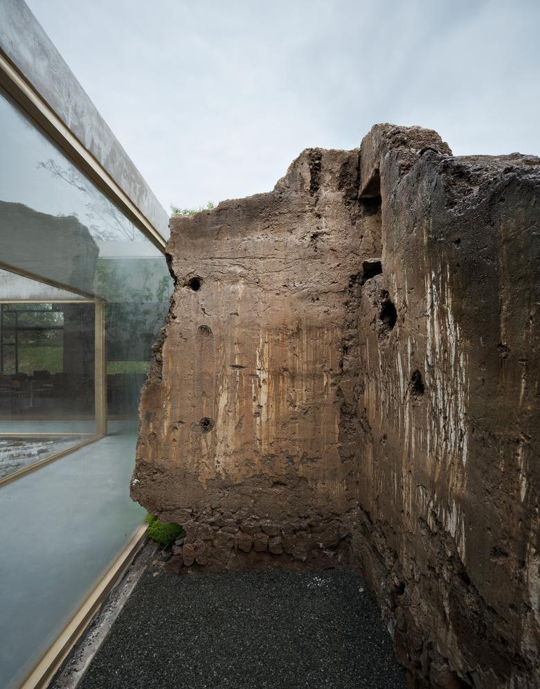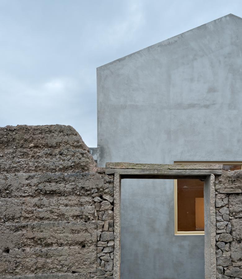Historical folk houses were traditionally constructed using rammed earth walls and bricks, but rammed earth walls are susceptible to weathering and erosion. In the current state, both the roofs and the rammed earth walls of the two buildings have deteriorated and cannot serve as the structural components of new buildings. Therefore, the Villagers' Home is built with new concrete walls, which contrast sharply with the original rammed earth walls. This design not only incorporates new technology, but also harmonizes with the surrounding environment and resolves the conflict with the village, creating a transition between the past and the present.